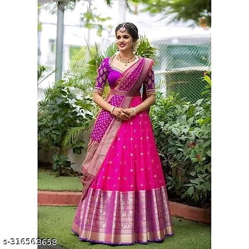 Name: Women's Traditional Kanjivaram Silk Lehenga Choli With Blouse Piece And Dupatta Half Saree